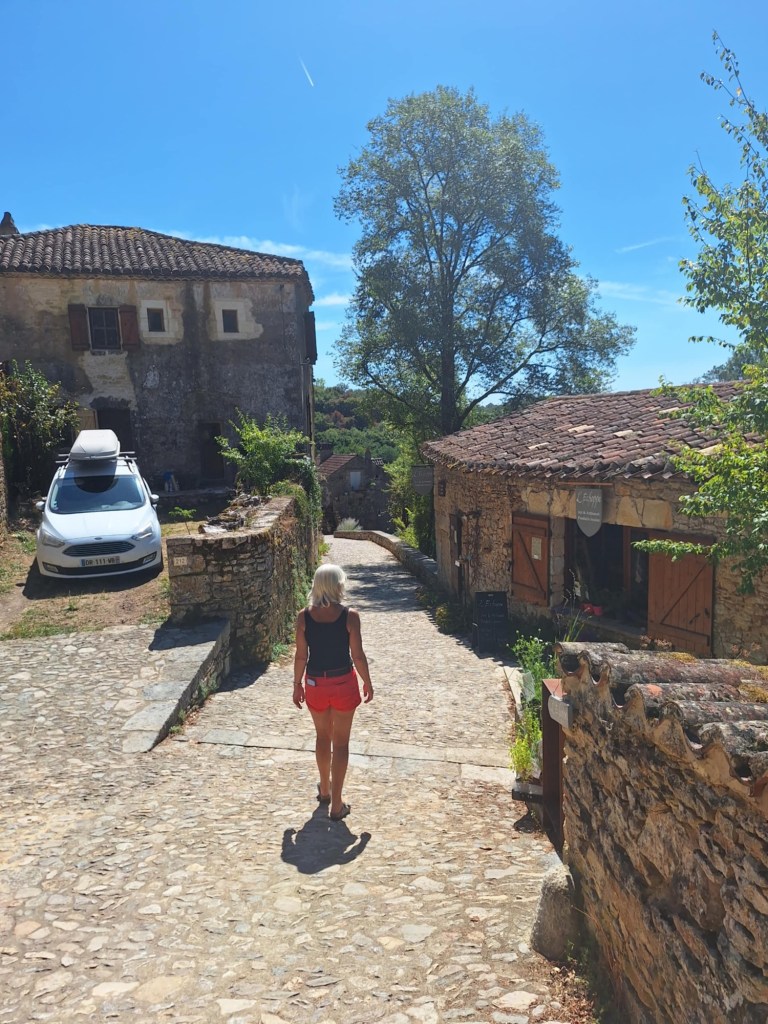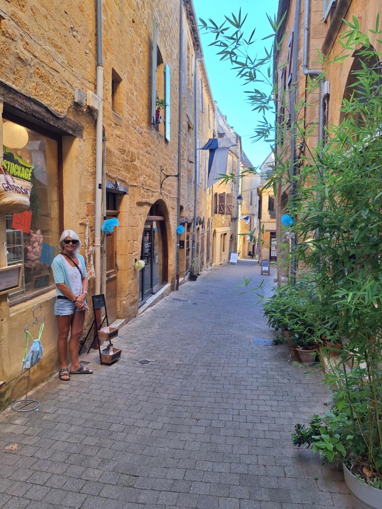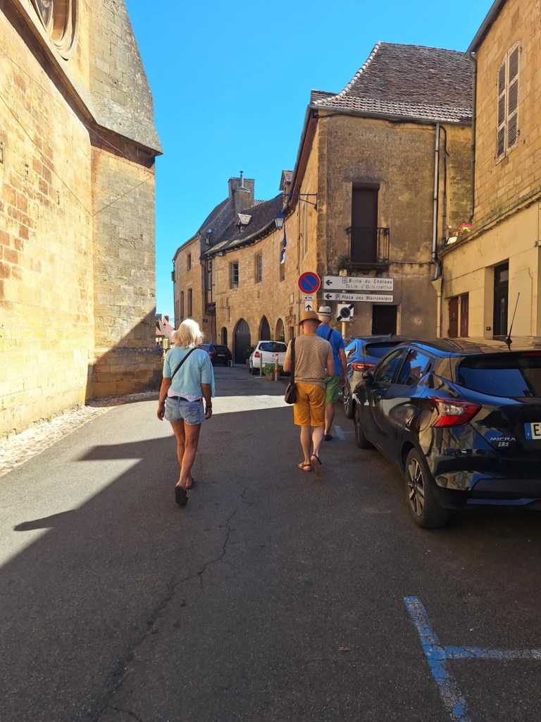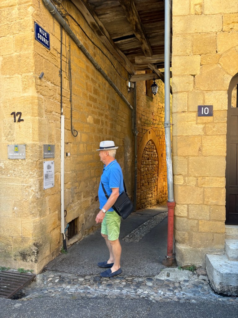 Yesterday, there was a planned road trip…..Gourdon in the Dordogne area, north of the Lot region, is a small city that originated during the Middle Ages ….and, as with all medieval villages, built on a hilltop! Kevin and Rols dropped us (Carolyn and I) in the centre of town while they zoomed off to check out some car parts….