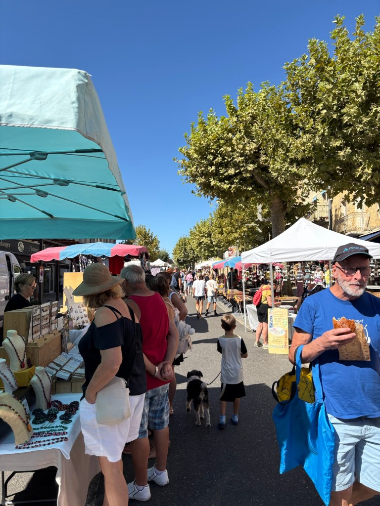Once again the promised thunderstorms had held off and arriving home at 5pm, we spent a pleasant couple of hours in the garden…until it wasn’t….the rain has come down overnight and the thunder is still rolling…this doesn’t bode well for the weekly market in the nearby (walkable to) town of Monsempron!