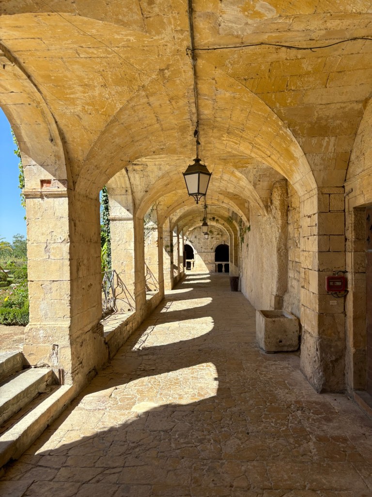We left the castle and wandered down to the Brit hotel through stone archways….