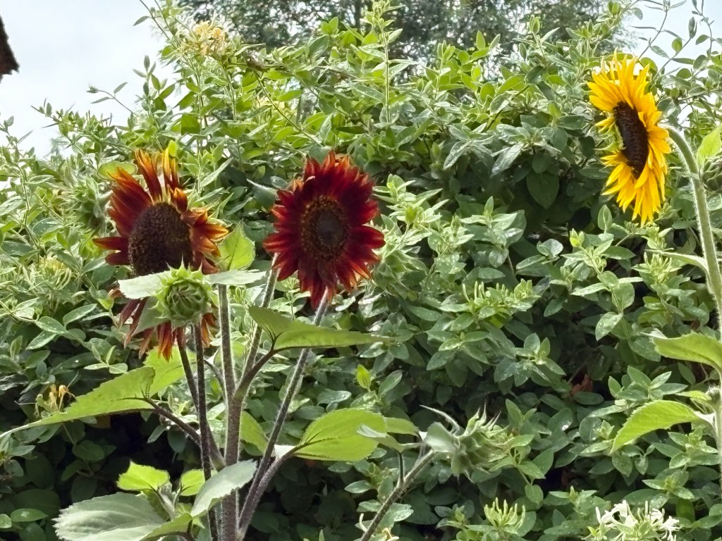 And 3 metre high sunflowers – one stem with many heads!!!