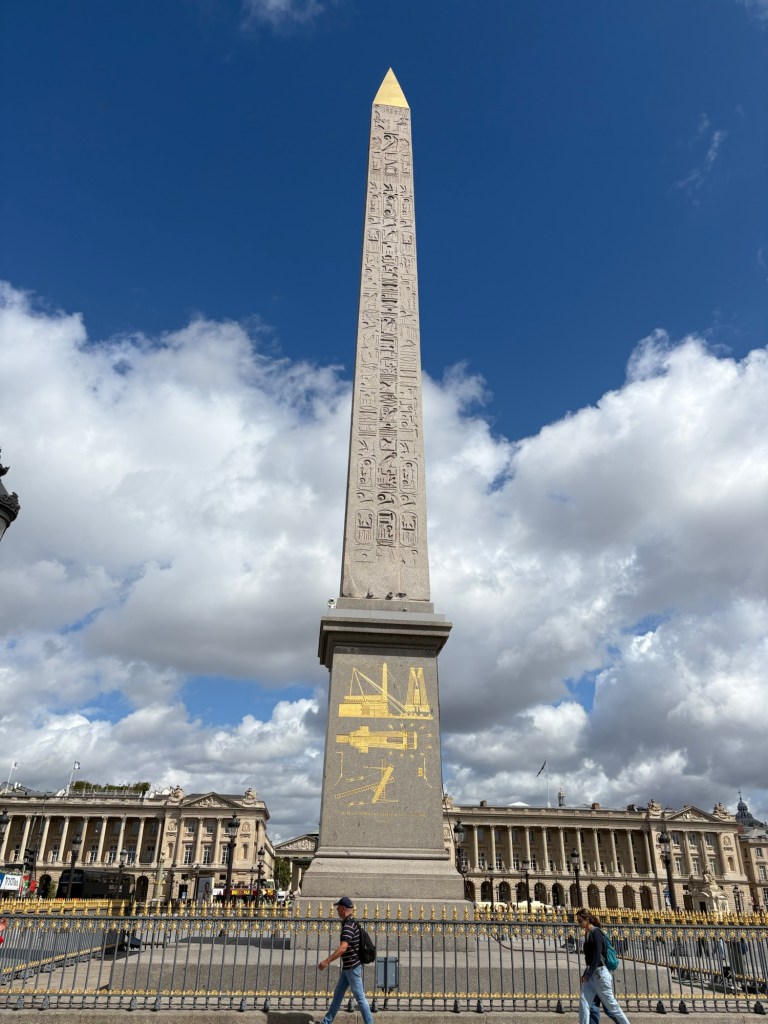 Place de la Concorde, the largest public square in Paris, France. Measuring 7.6 ha in area! Teeming with tourists, buses, taxis and bikes! All foot traffic making a beeline for the Tuileries gardens….