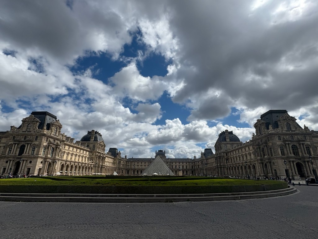 As one emerges from the gardens you are treated to the spectacle of The louvre (art museum) the home of the Mona Lisa….and finally out to the water…