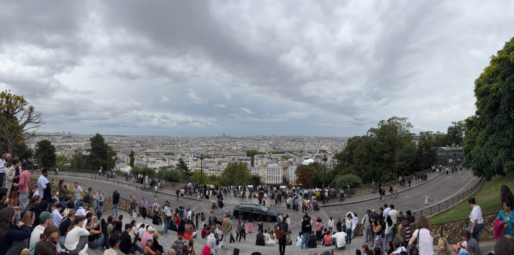Day two in Paris….again threatening rain, but again not eventuating…..meant plan B was not needed…and after a stroll around the local market and lunch, Carolyn and I took the bus to the Place de Clichy at the foot of the famous perch of the Sacré-Cœur Basilica, which sits on the top of Montmartre and overlooks all of Paris city…