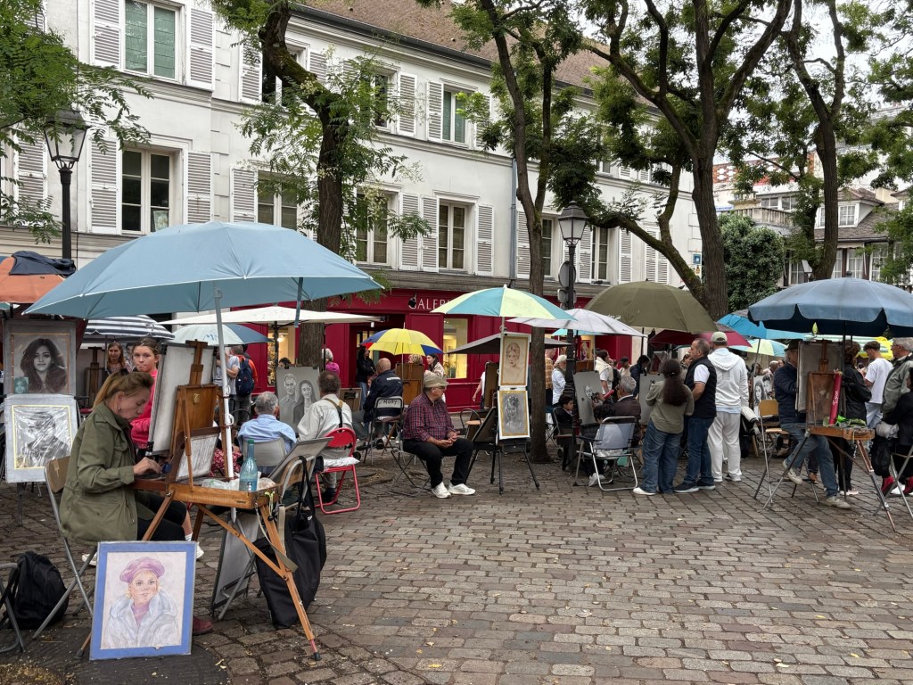 The place (terrace) where, 15 years ago, was full of budding and struggling artists painting and selling their work….has now been mostly overtaken with cafe seating and only a small area designated to artists ….. mostly offering to draw or sketch your caricature or portrait! Kind of sad really as this area was dedicated to the art culture of Paris and now houses mostly souvenir shops and eating places….a total tourist trap! While still cute….it does retain its quaint buildings and architecture!