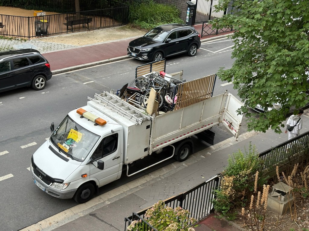 Meandering down the cobbled streets once more to the Place de Clichy we caught our bus home…to watch the Sunday inorganic collection from the terrace…