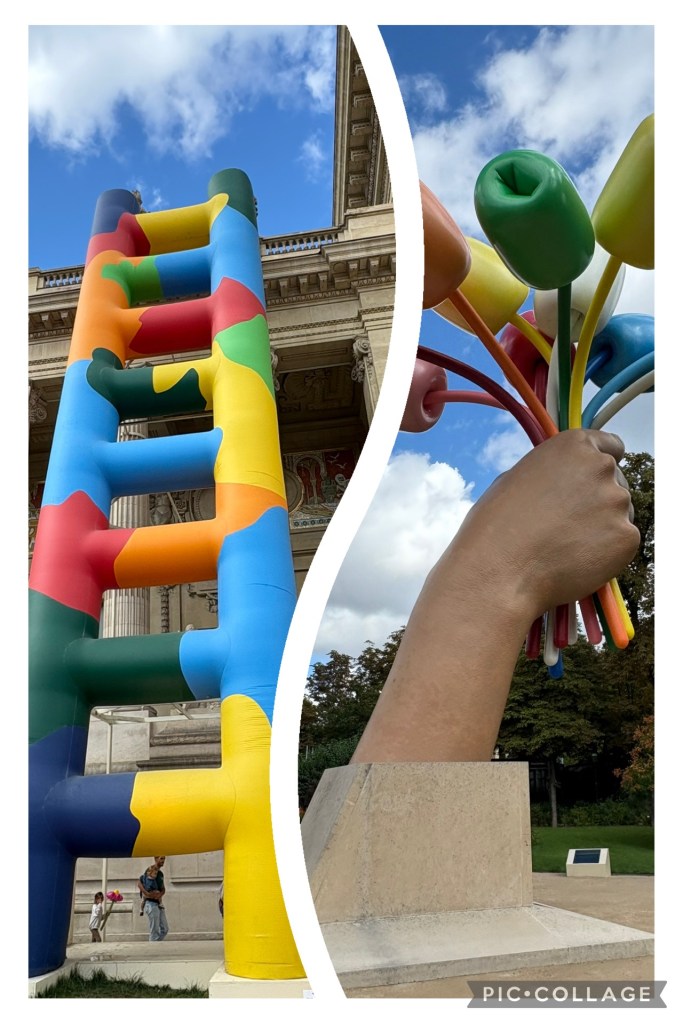 Ladder on the Grand Palais and tulips in the gardens behind the Petit Palais….in these quiet gardens we took a moment to sit and enjoy our pre bought lunch sandwich’s….in an otherwise hectic area of must sees for every tourist in Paris, these gardens were very quiet and uninhabited!!!