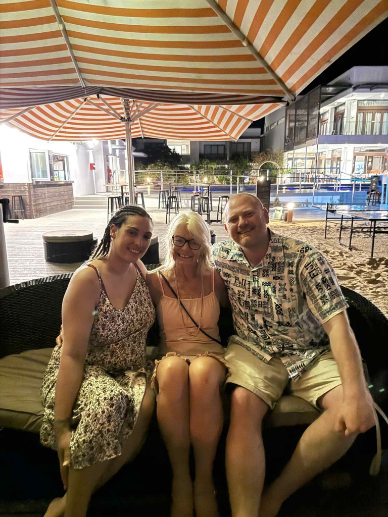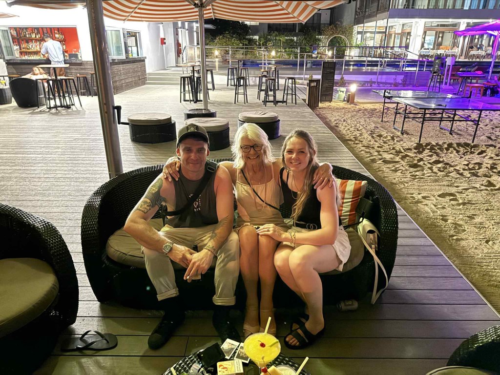 So what could we do, a cool drink, food for the kids…a taxi home, babysitter organised while the adults (minus George and Jess) headed to the adults only cocktail bar….