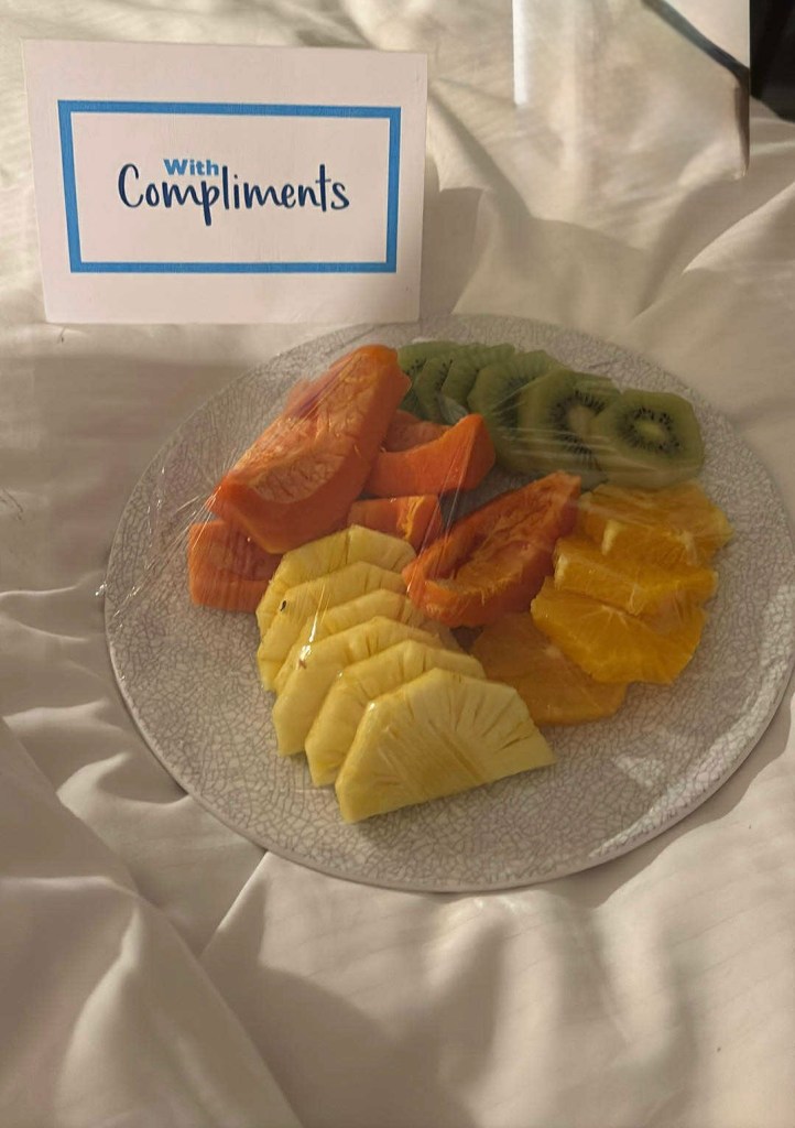 Produced a complimentary fruit platter for our dissatisfaction and half an hour later George and Jess received the same! It will remain to be seen if the promised credits come through at checkout!