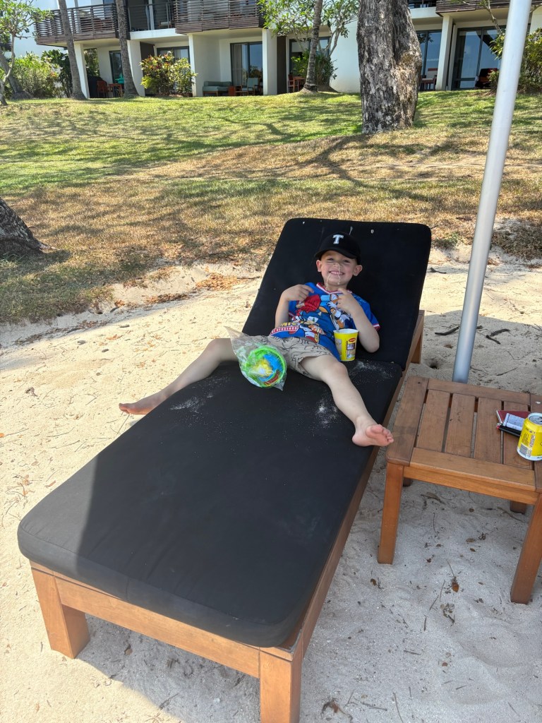 Travelling with babies is always fun and messy! We allowed half an hour gathering time before the Catamaran was due to pick us up at 5pm… the last trip off the islands for the day, and as first boat was full…we waited a bit longer for the second less crowded one…arriving back at Port Denarau at 6pm…