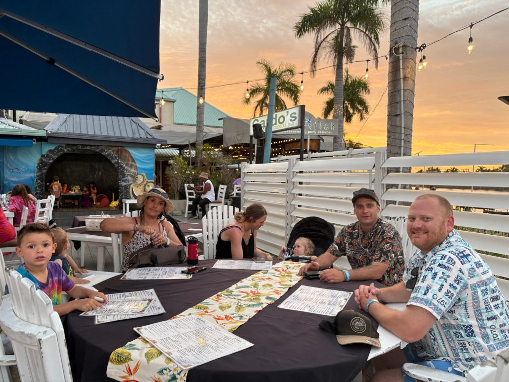 We all decided on an early night, restaurant takeaways for the baby families and Gran’ma and George and Jess an early dinner at the Asian restaurant, as we have a big excursion today to the much anticipated island!