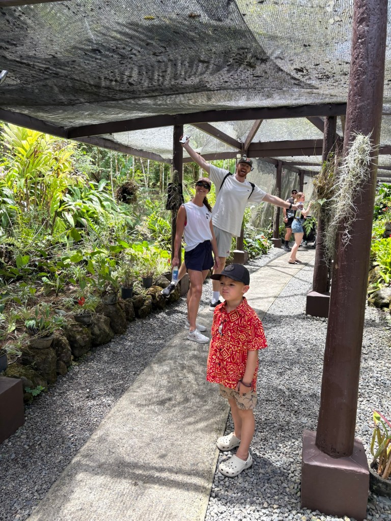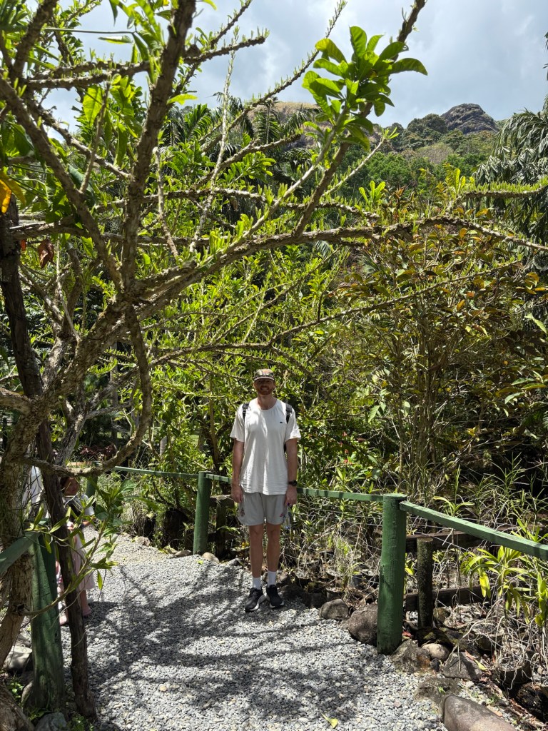 After last evenings rain, the humidity was through the roof, and having bought a couple of trinkets for Tyler…we were wet from head to toe! And more than ready for a dip in the pool! We hailed the nearest taxi and for half the price $15 came back to the hotel…to cool off, re dress and get ready for the afternoons excursion to the botanical gardens at the foot of the Sleeping giant (mountain) on the other side of Nadi…