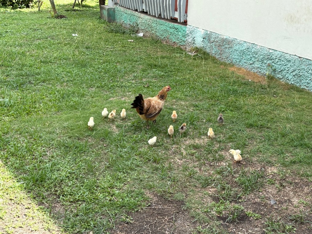 Chickens and babies, Fijian toddlers shouting bula (hello) run down shacks, apart from the chiefs house…. Where George and Jess were jumping for joy!