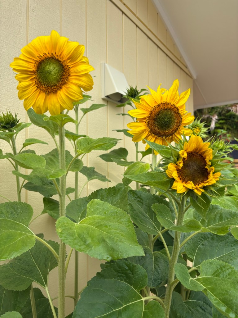 My sunflowers grew to 7foot and bloomed golden in the sunshine with heads the size of dinner plates…