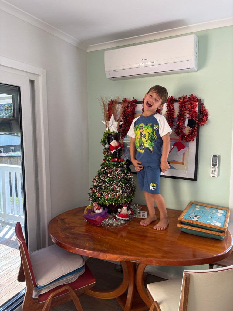 And that’s about a wrap as we countdown the 6 sleeps to Christmas Day, December rain and wind returning for the festive week, and for my offspring a much looked forward to holiday! Dan returns from Waiheke today for a couple of weeks break with his Fanily, Jax and Steph have two weeks of coming and going from the cottage, and George and Jess are taking a mini break up north between Christmas and New Year….while Gran’ma babysits the cat!!
