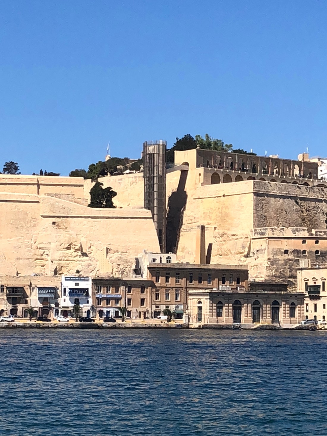Up in the lift (the steel and glass tower in picture below) from the ferry to barracca gardens in Valletta