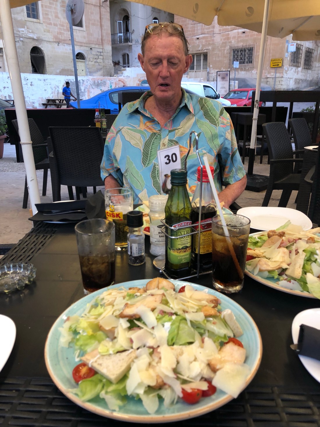 We had then arranged to meet our Maltese friend, Charles, at the Barracca gardens cafe at 10am for our morning coffee and tri annual catch up. Great coffee and cool green gardens