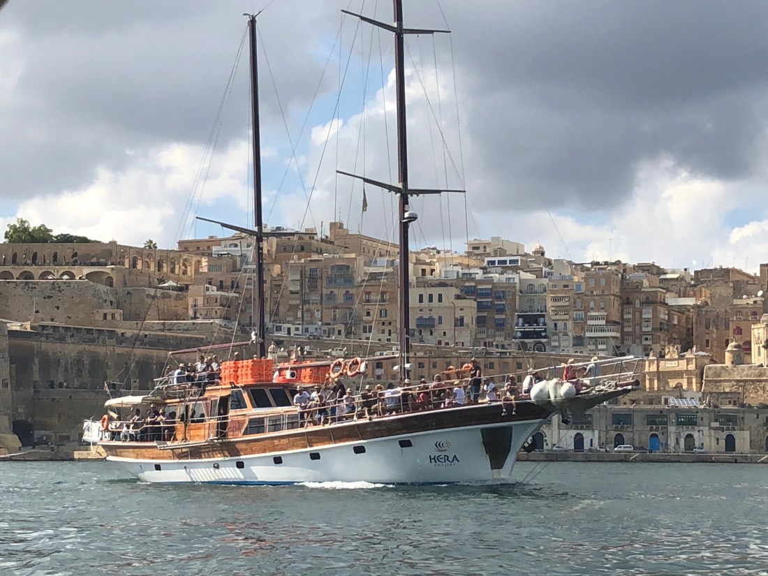 Footing it with the big boys – 4 on a Luzzu 100 on a tourist boat – we felt like the mouse beside the elephant!