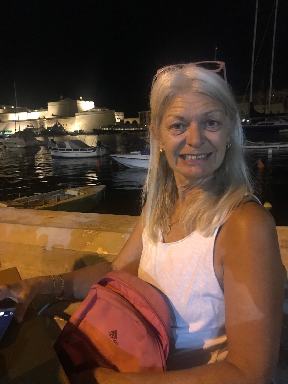 George’s last evening at Senglea waterfront kiosk for fish and chips! A great dad photo with a postcard background!