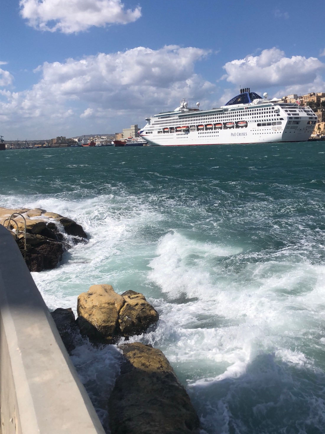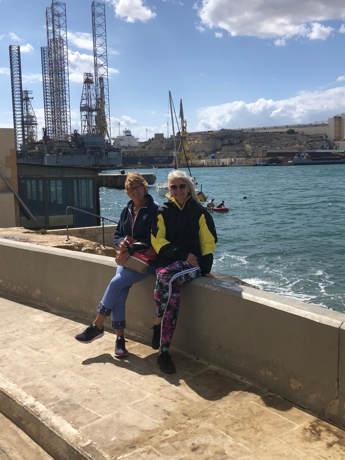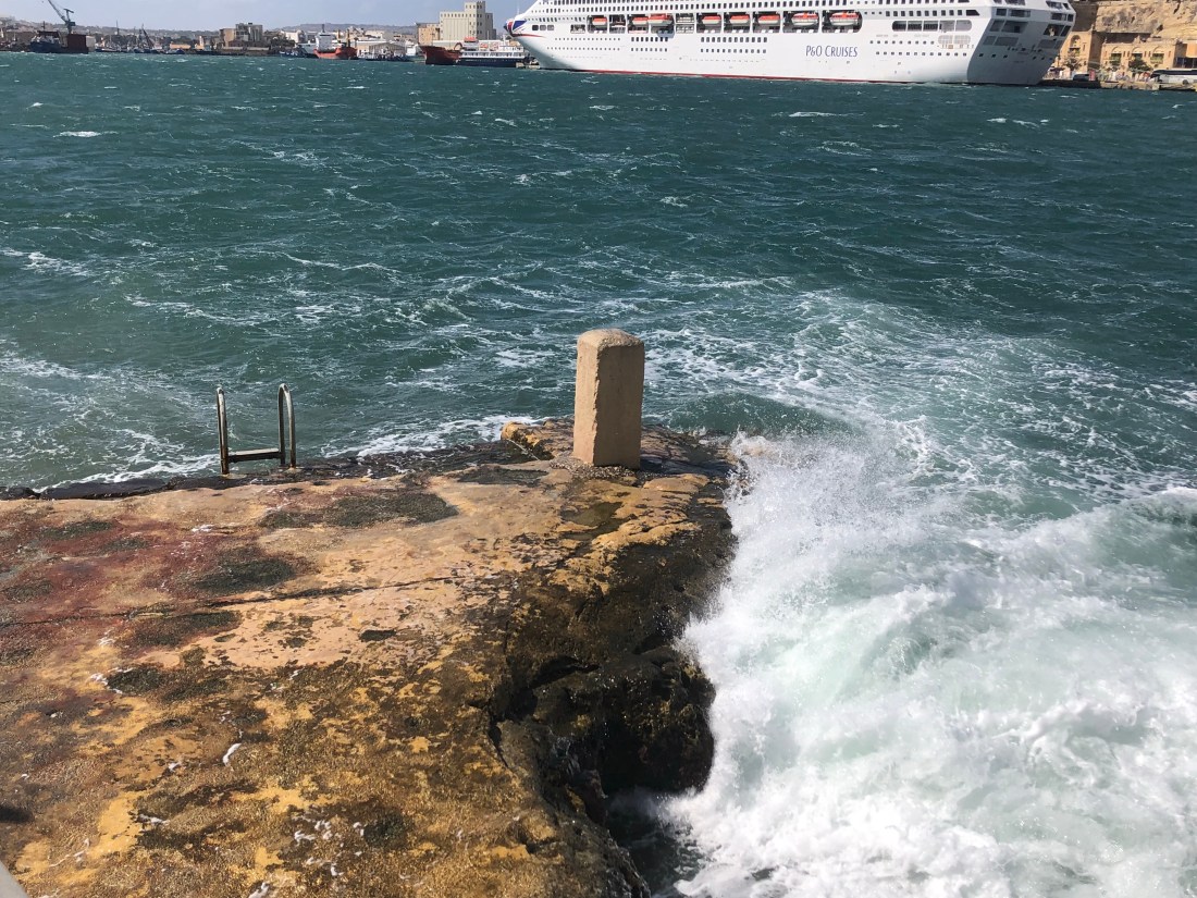 The wind was almost gale force blowing into the grand harbour, boats were rocking on their moorings and three kiwis had trouble staying upright