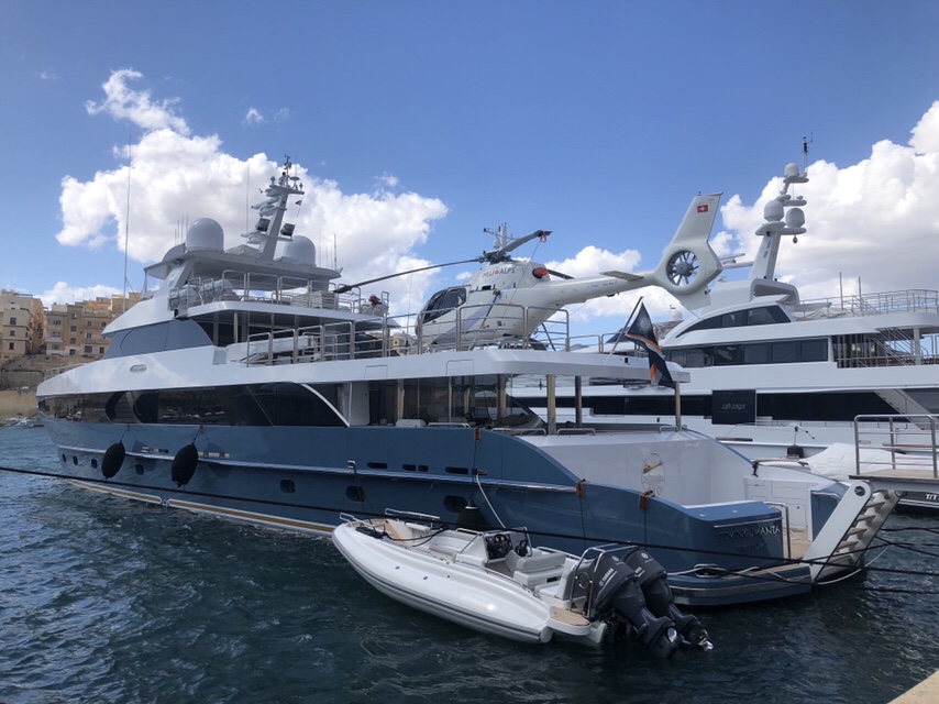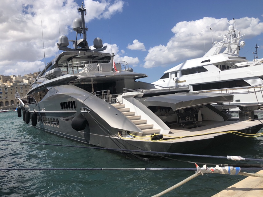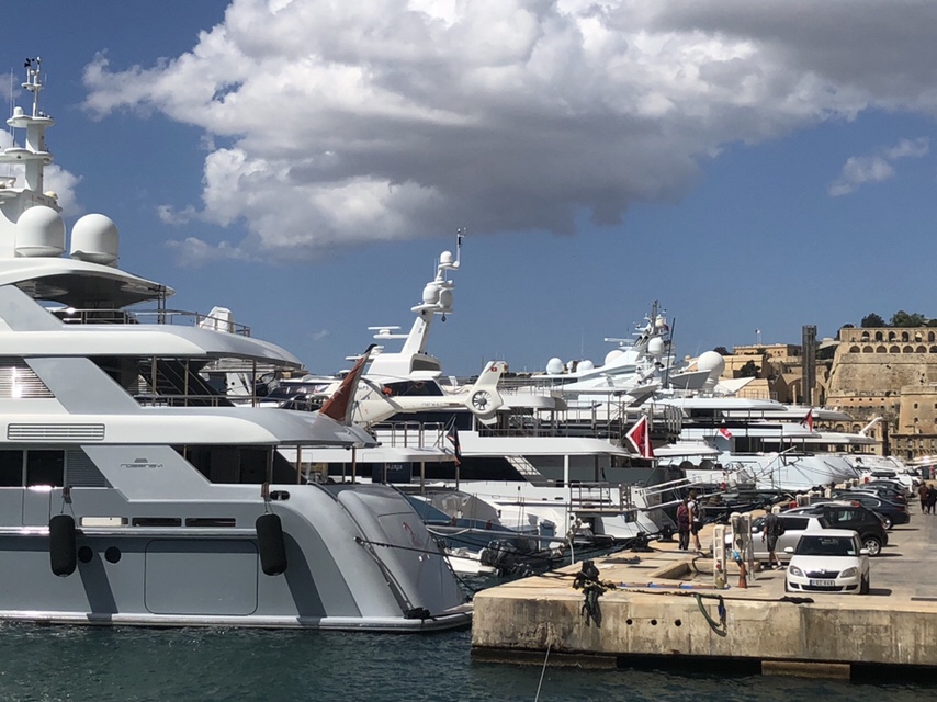 We then noticed that the marina in Vittoriosa had filled up and was sheltering lots of new boats from the storm so off we went to walk the wharves – the big boys were in town…
