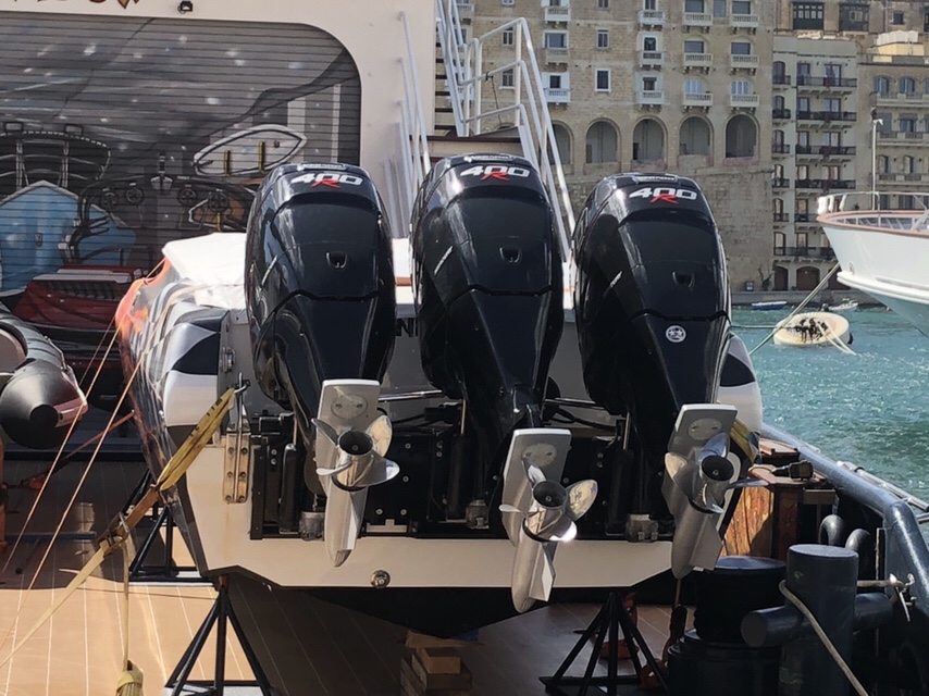 3x 400hp motors on the racing toy (we have one 150hp on our 21 footer back home)