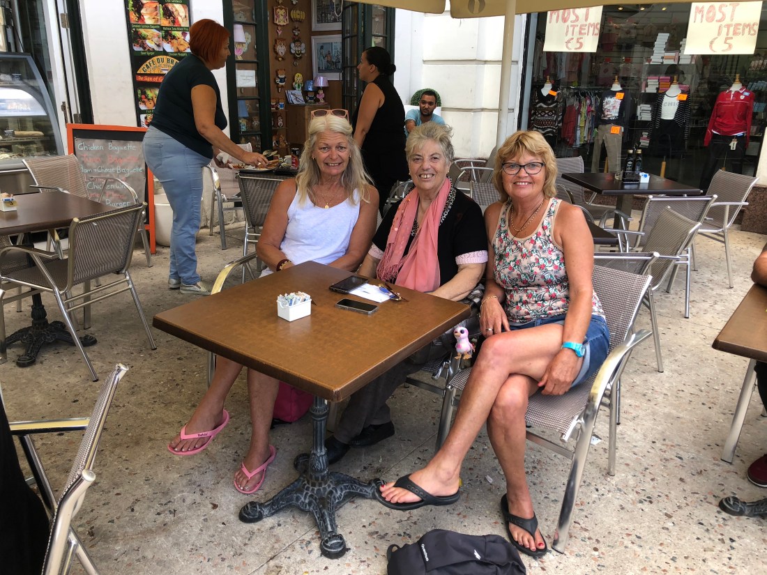 Then back to find our Pianist friend Carmen for a coffee. Not answering her phone and not at home, it appeared we would not have the promised catch up! However, driving back to Bormla to collect Russ from the ferry we spied her at a cafe finishing her coffee on her own. Screech of tyres, Trudi jumped out, and Sue went in search of a car park.