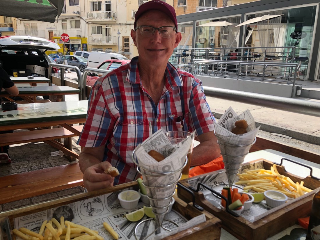 Sue and Russ then headed North to Bugibba (the tourist Mecca) to catch up with Sue’s cousin Marcella. Had a wander around the many souvenir shops for about half an hour (yawn)Marcella swooped us up in her car! Back to her place then off to lunch.