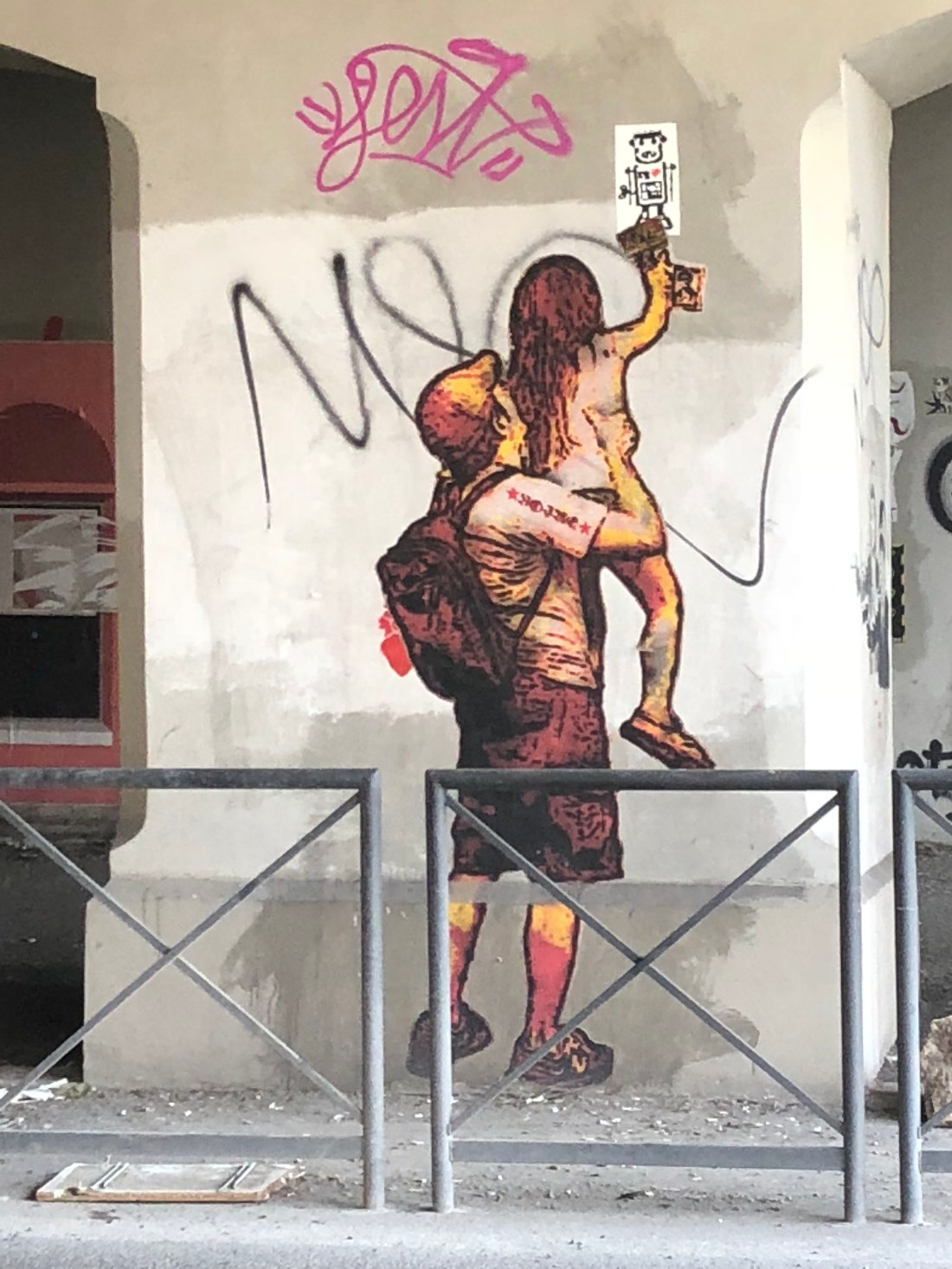 This morning we have enjoyed…Street Art….memorials….modern architecture….ancient architecture and history…coffee art and community services (coastguard river style) all within a 5km radius from our home in Rome!