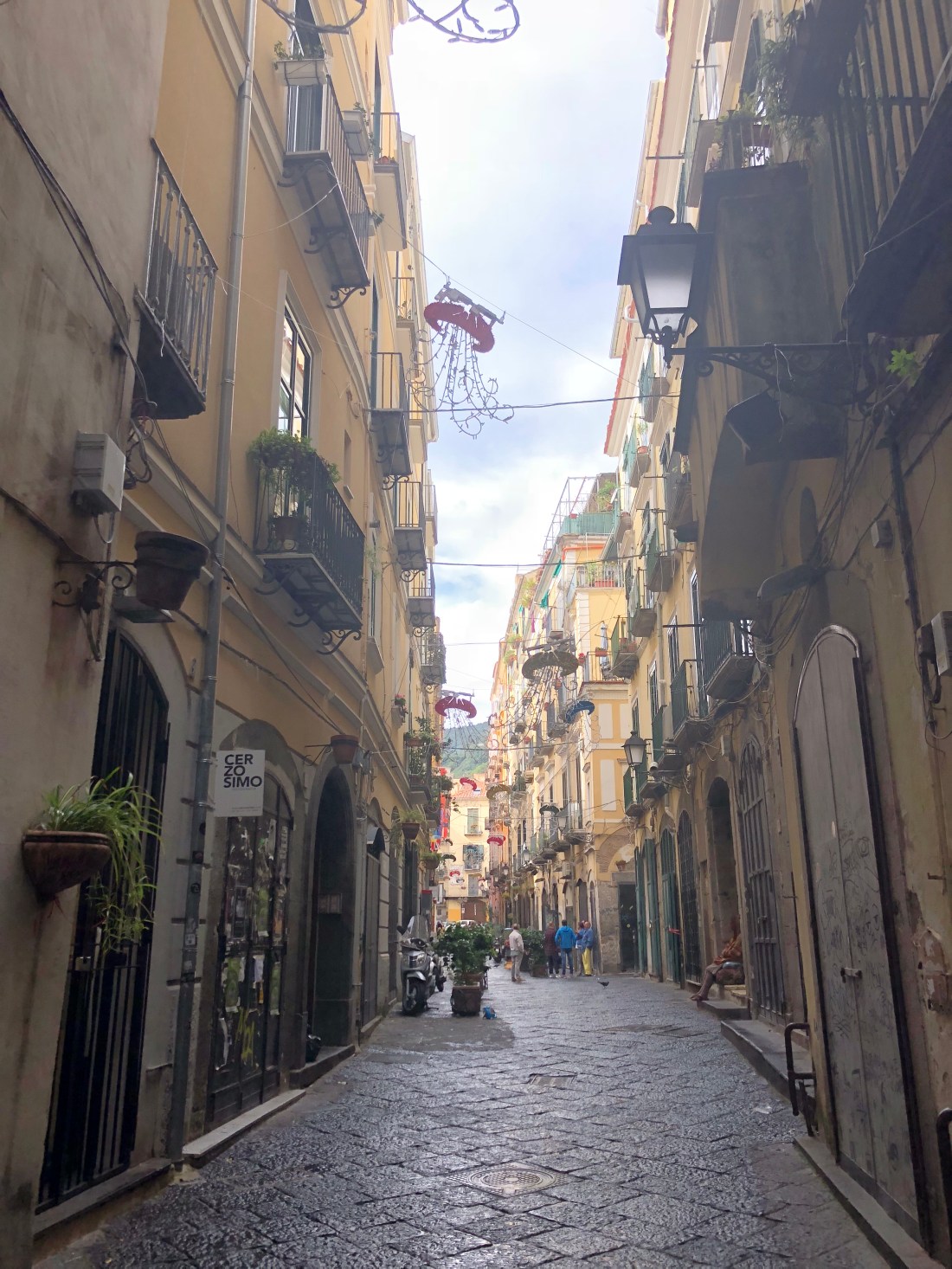 Prepared for the weather change with rain jackets and umbrellas we walked to the top, to catch the bus, arriving in the city of Salerno around 10.30am.