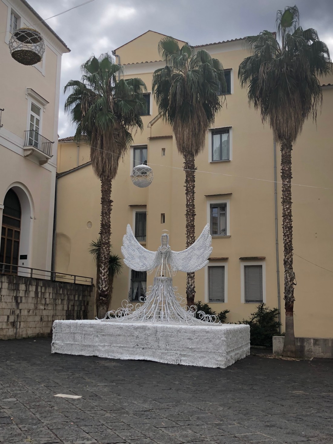 And guided by an angel! The Christmas bunting was starting to go up in these old streets!
