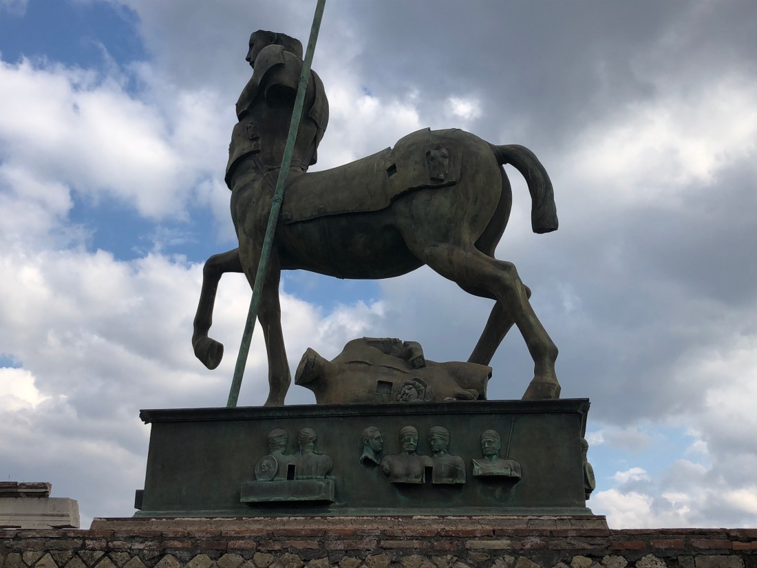 Arriving in Pompeii at 9am (a 30 minute train ride from our town) on a chilly morning after yesterday’s storm. 10 minutes of walking the gauntlet of tour operators trying to sell us deals to the archeological site.