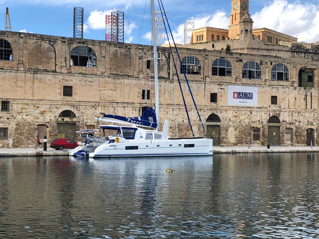 Boats moored on the inlet – this 50m cat in front of the old Bormla docks (yet to be restored and the next stage of the American University)
