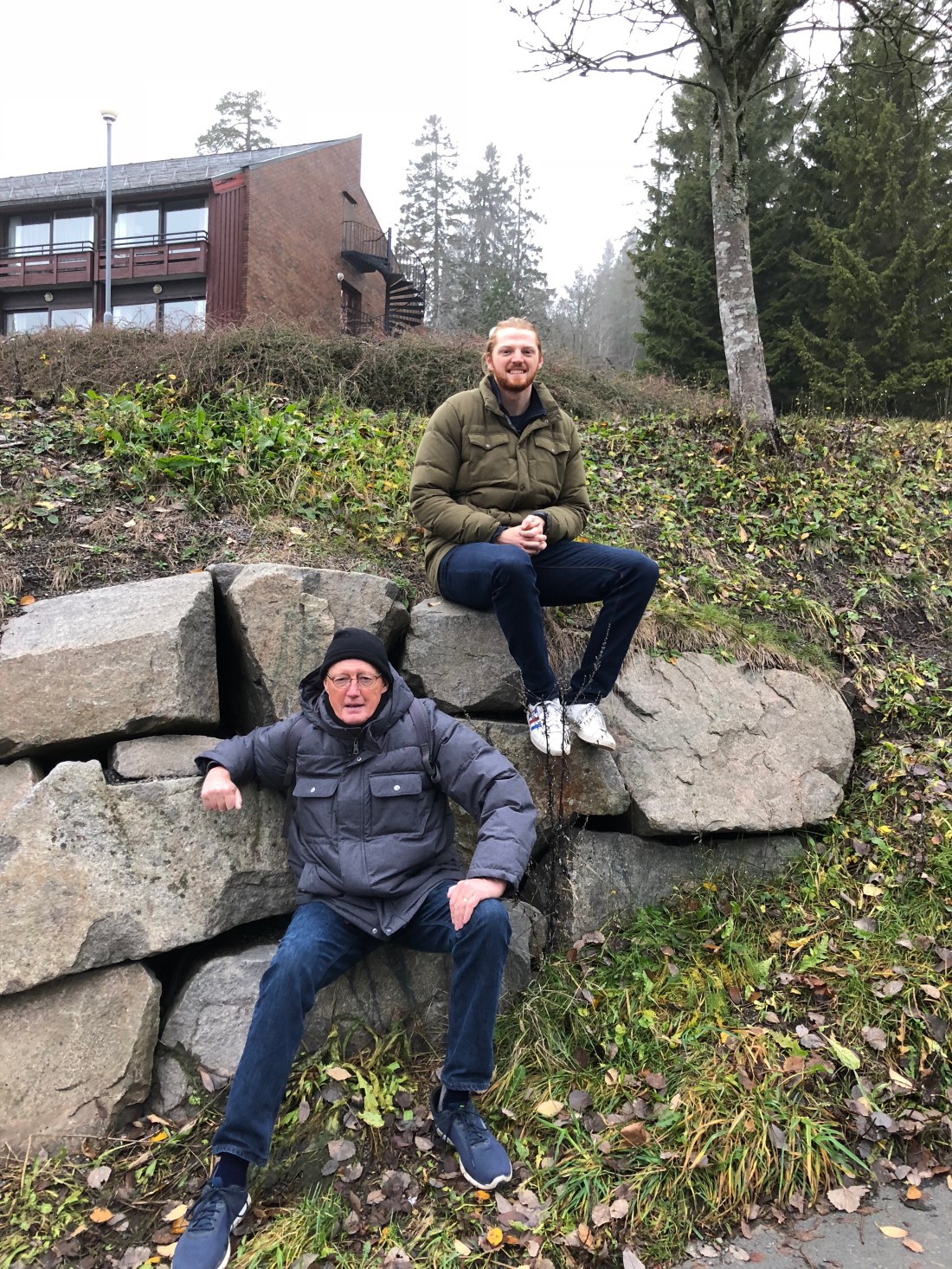 That’s us, taking a rest stop on the climb up the mountain to the ski museum and famous Oslo Ski Jump! George had met us just after 9am and we had trammed and trained into the hills on the outskirts of Oslo.