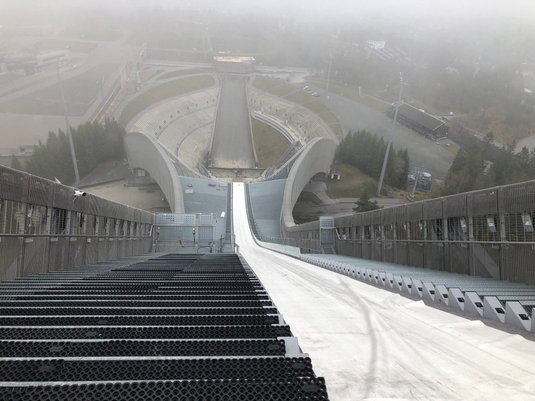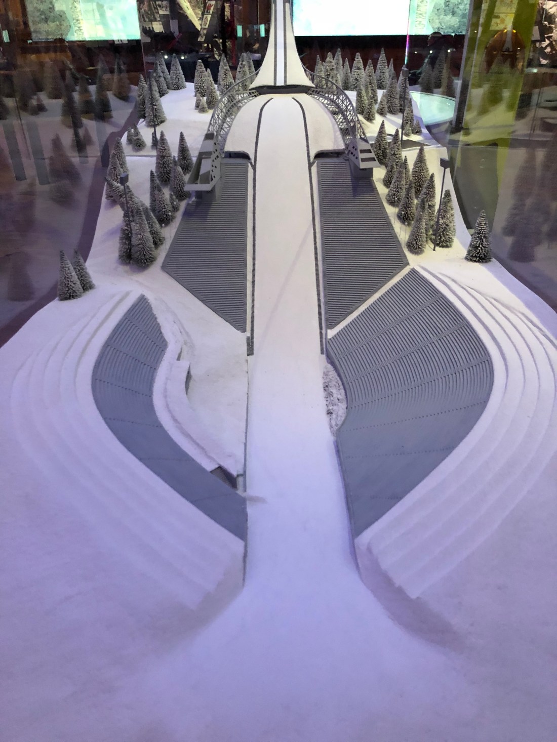 We then took the elevator to the top of the ski jump, still devoid of snow – but very high up and a test to the vertigo tolerance.