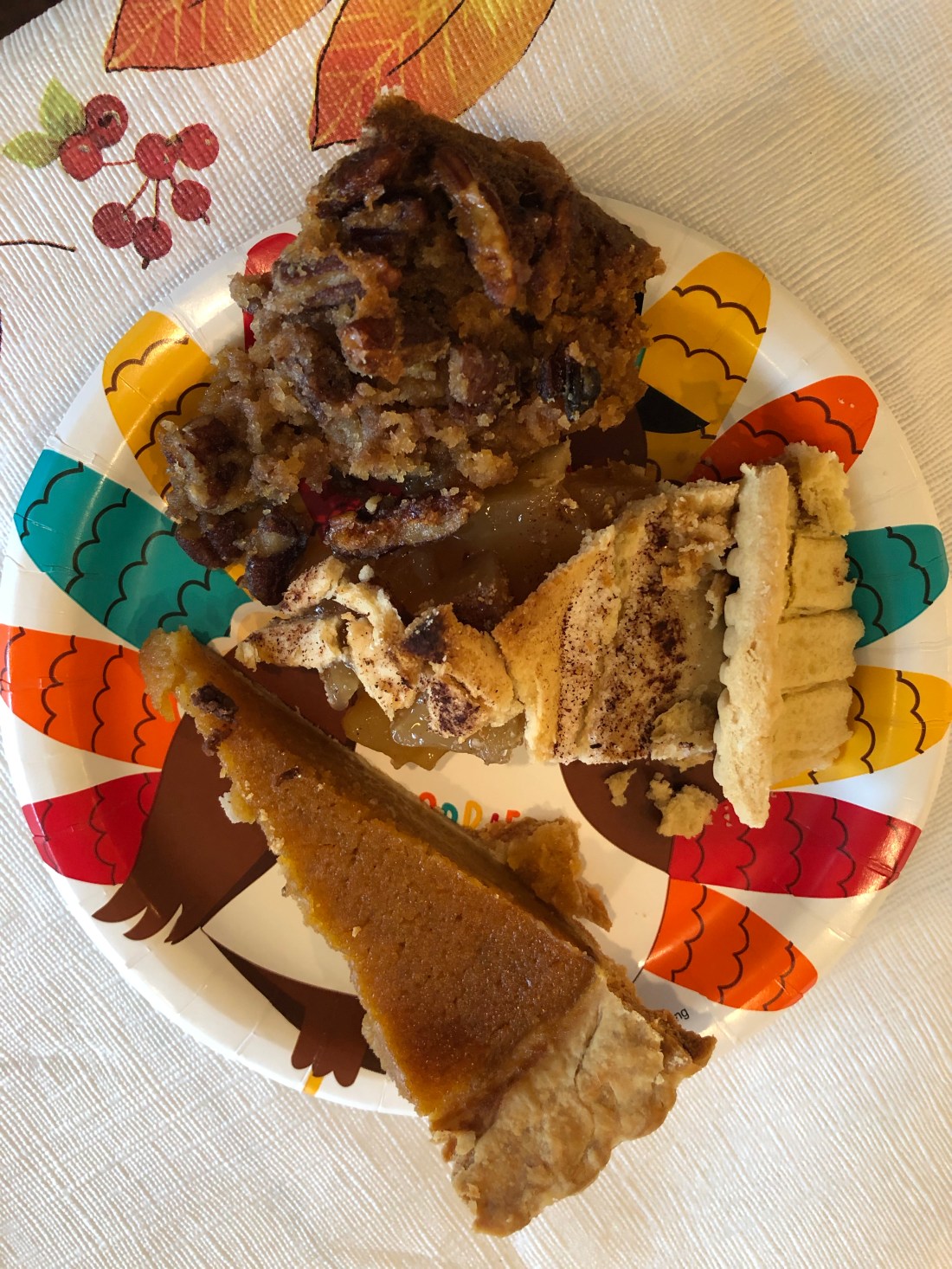 My choice of deserts – pumpkin pie, apple pie and pecan pie! Just had to try it all! (Actually there were several more choice but just couldn’t fit on my plate or in my stomach)