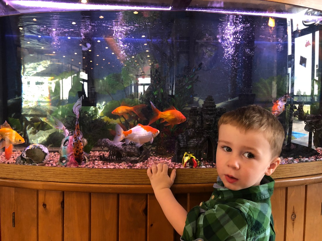 James enjoying the fish tank, before heading home to pack up and head back to their home!