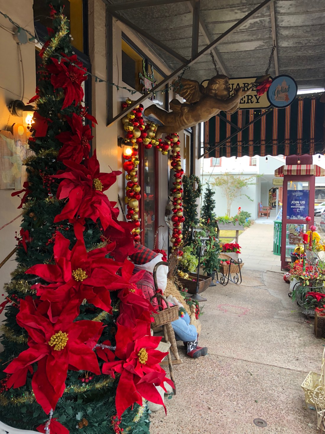 In search of a coffee through the main street Christmas bunting!