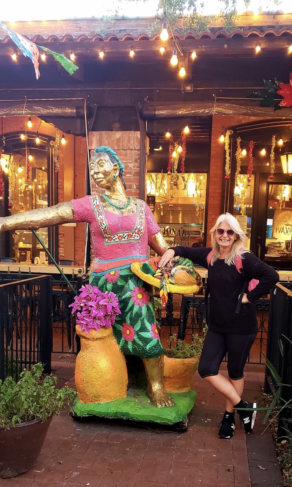 Past the gingerbread house (actually the courthouse) Trina and Sue staying close so as not to get lost.