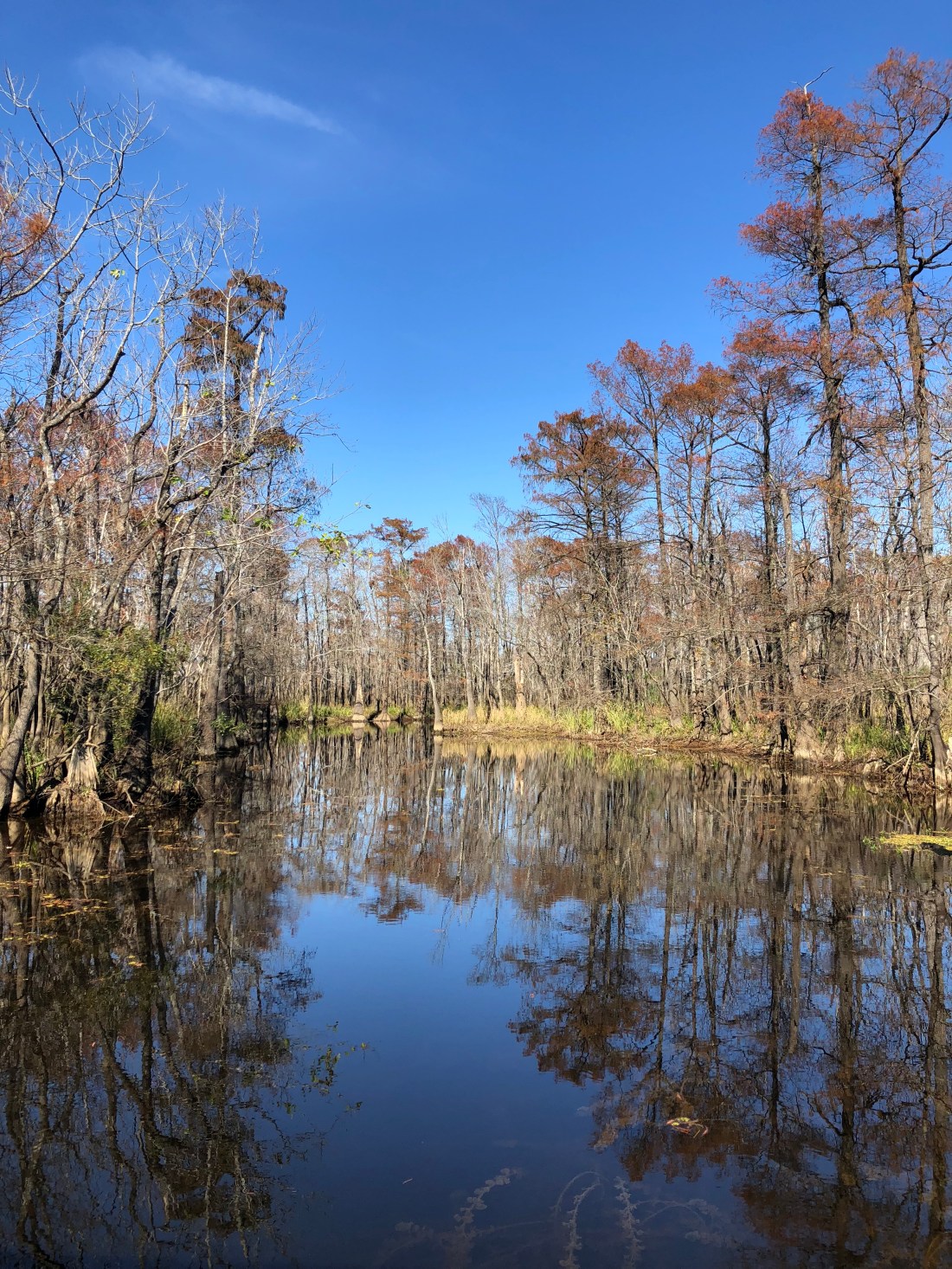 Cyprus trees that grow in the water – the water was like glass and the reflections were perfect!