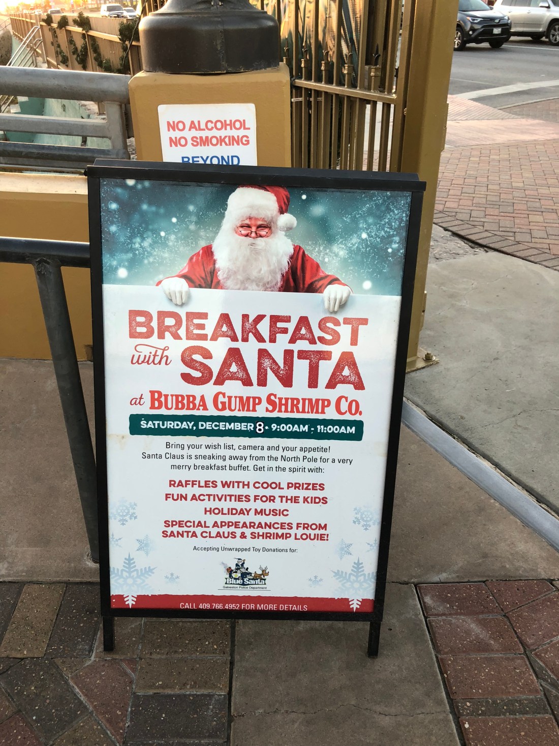 Bubba Gump shrimp restaurant on the pier – offering breakfast with Santa!