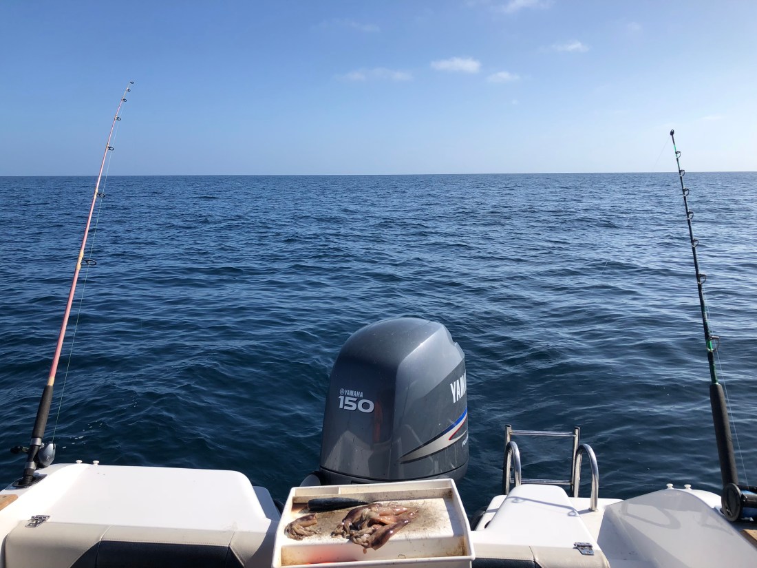 Out further, day getting hotter, more sunblock on our feet, to 42meters (just inside the shipping channel). Not a fishing spot and no other anglers around!