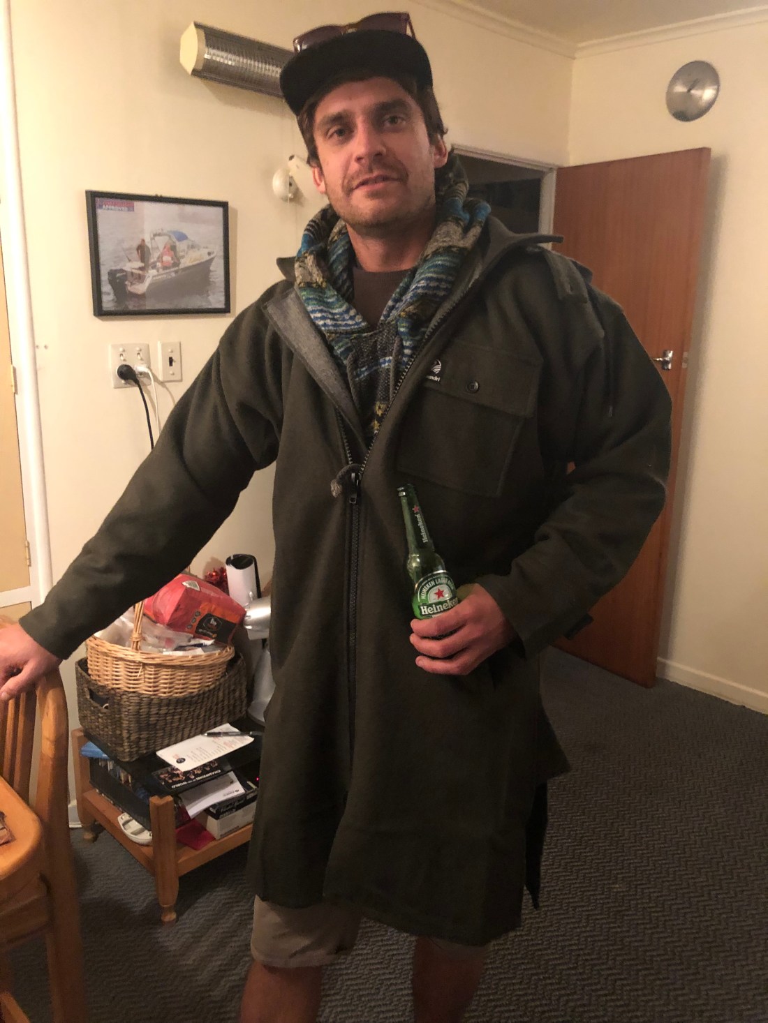 Last night with the son we are leaving behind, Dan in his new swandri! A must have for every kiwi builder!