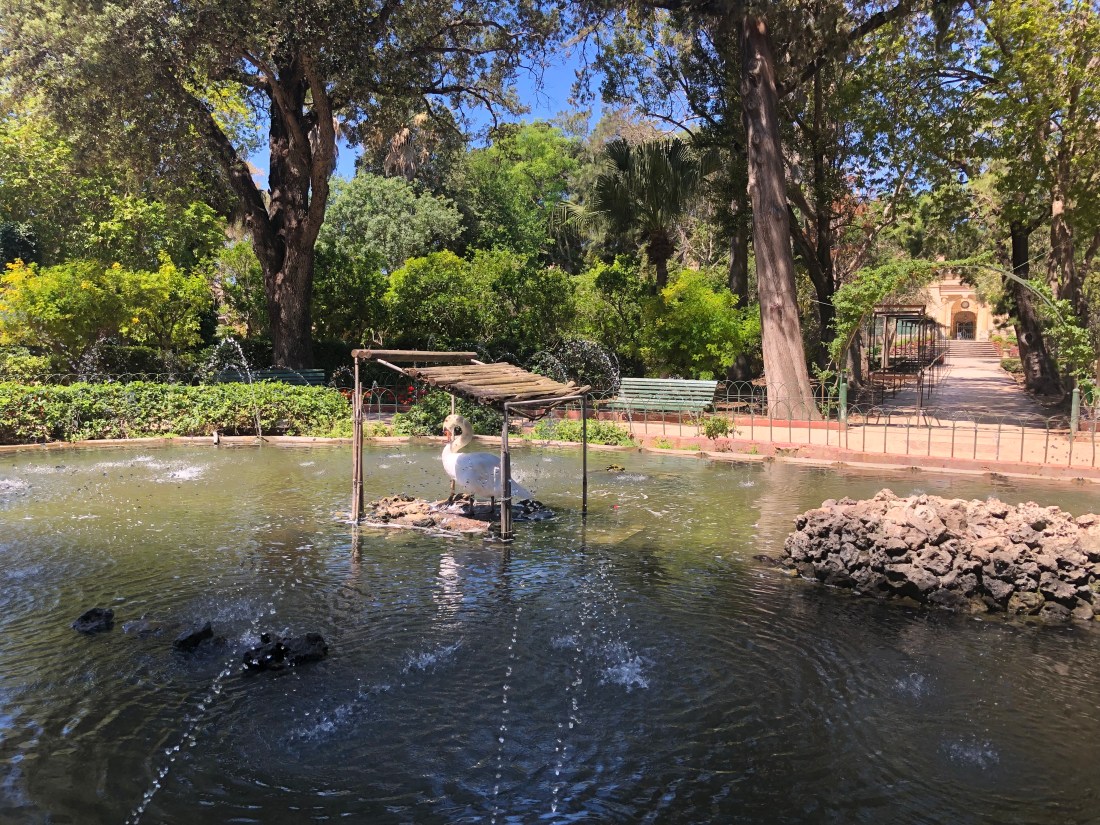 White swan posing on the lake. This place used to be the Maltese zoo and the best wildlife stay on, why wouldn’t they?