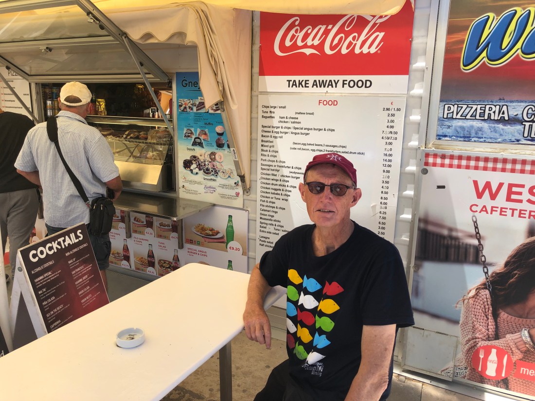 Across the Island to Gnejna Bay for lunch at the food truck….baguettes for 3euros! And a free public toilet!
