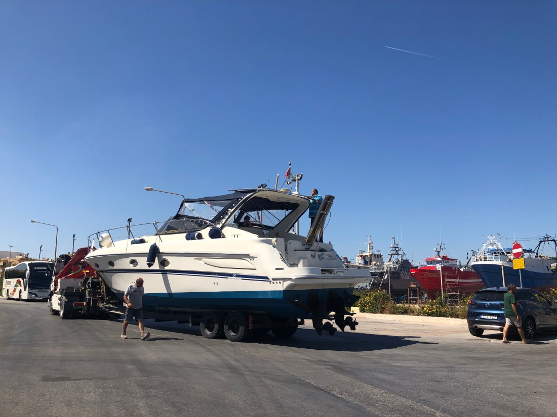 A quick stop for liquid supplies at Lidl, dropped John and Chris back to the ferry and now home on the rooftop deck enjoying a cool “Cisk” our favourite local beer.