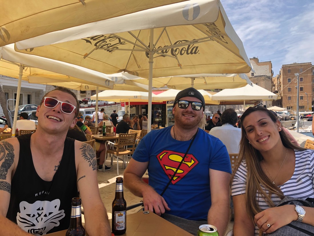 Hunger pangs started to kick in , it was now around 1pm, so we all walked around to the kiosk in Senglea, where they had their first taste of Cisk Excel, the local beer of choice.