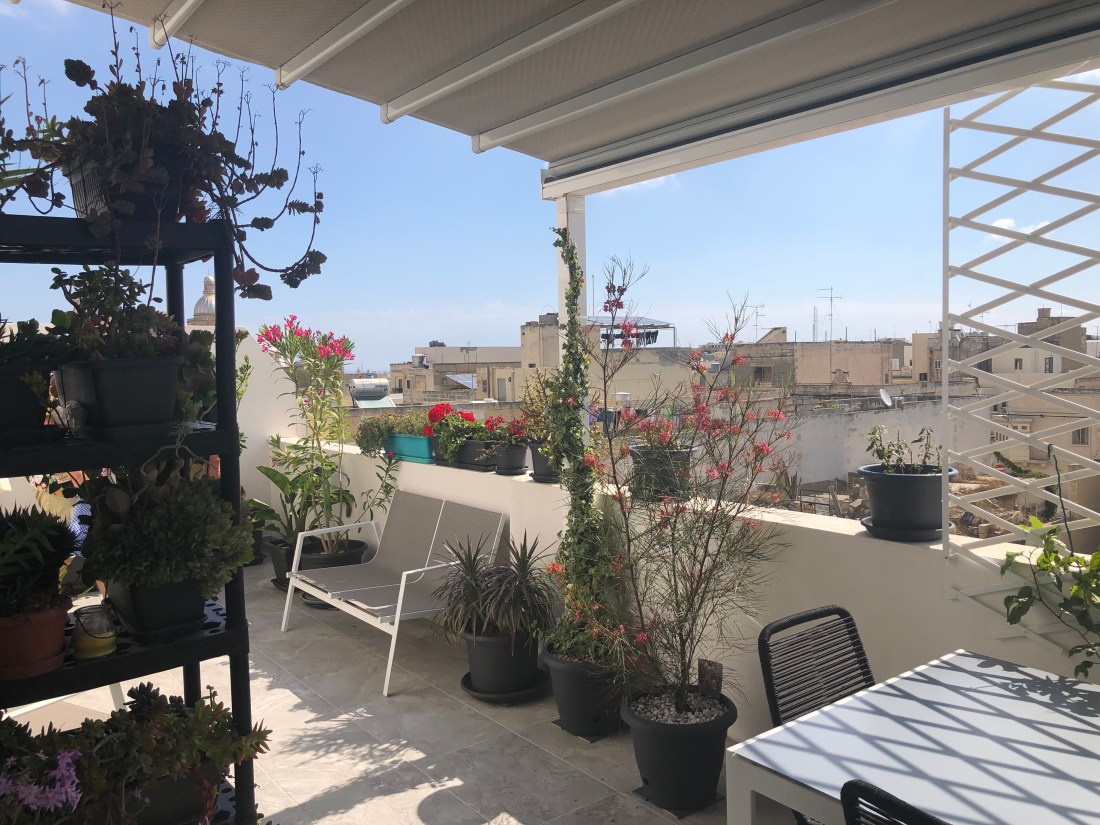 The deck at Kev and Rols, sporting the new trellis and passion fruit plants, a recent project.