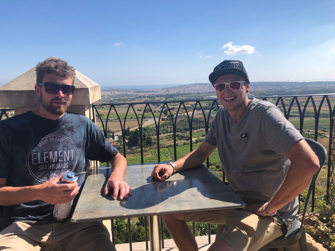 The circle of friends, Maltese style. insidethe walls, The kiwis all decided a coffee was in order, and for the first time in years we scored tables on the balcony above the wall.