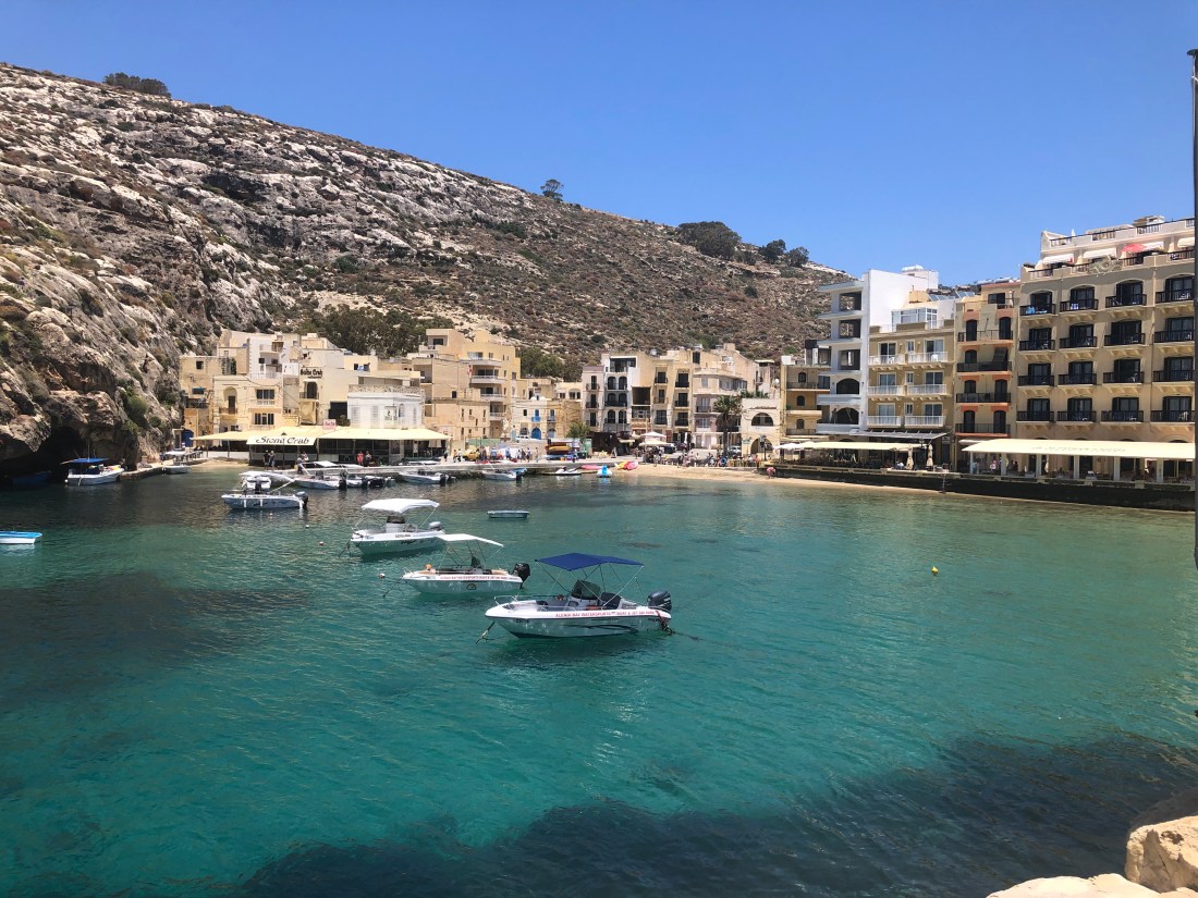 The drivers, Sue and Mike needed a well deserved break at Xlendi Bay.
