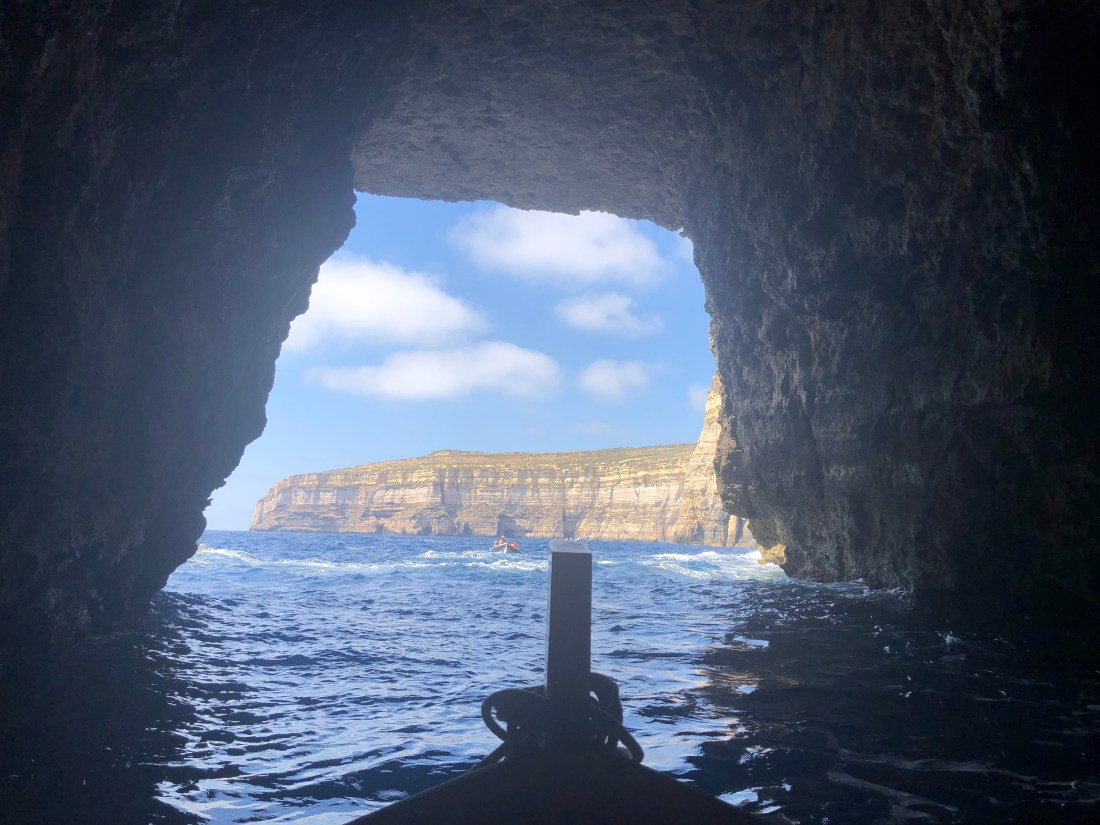 We took a Luzzu through the cave and out to the deep blue sea, and swells!